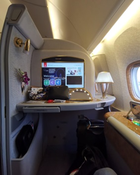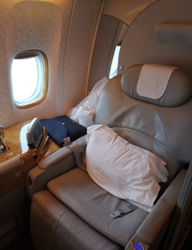 These are from my wife – left is from Business class on the Boeing 777-300ER flight and and right First Cls on Airbus A380.