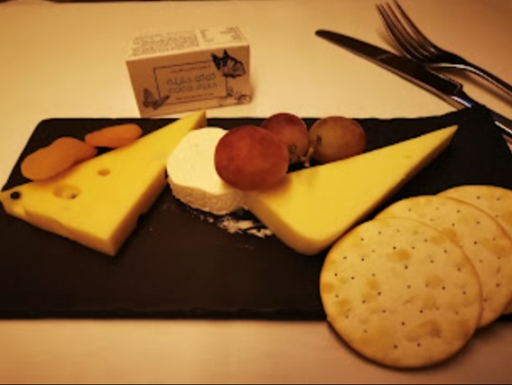 I decided to only have the cheese platter after my quick nap in the 7 hours flight. And the bottom photo is a comparison with the cheese platter in business class. Boy was the First Class cheese platter crazily big and classy.