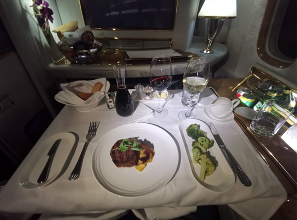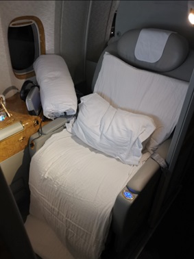 These are from my wife – left is from Business class on the Boeing 777-300ER flight and and right First Cls on Airbus A380.