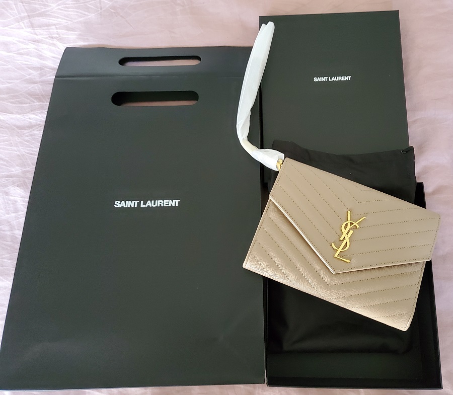 Therefore, she was very happy that her children got her the YSL Clutch in Beige.