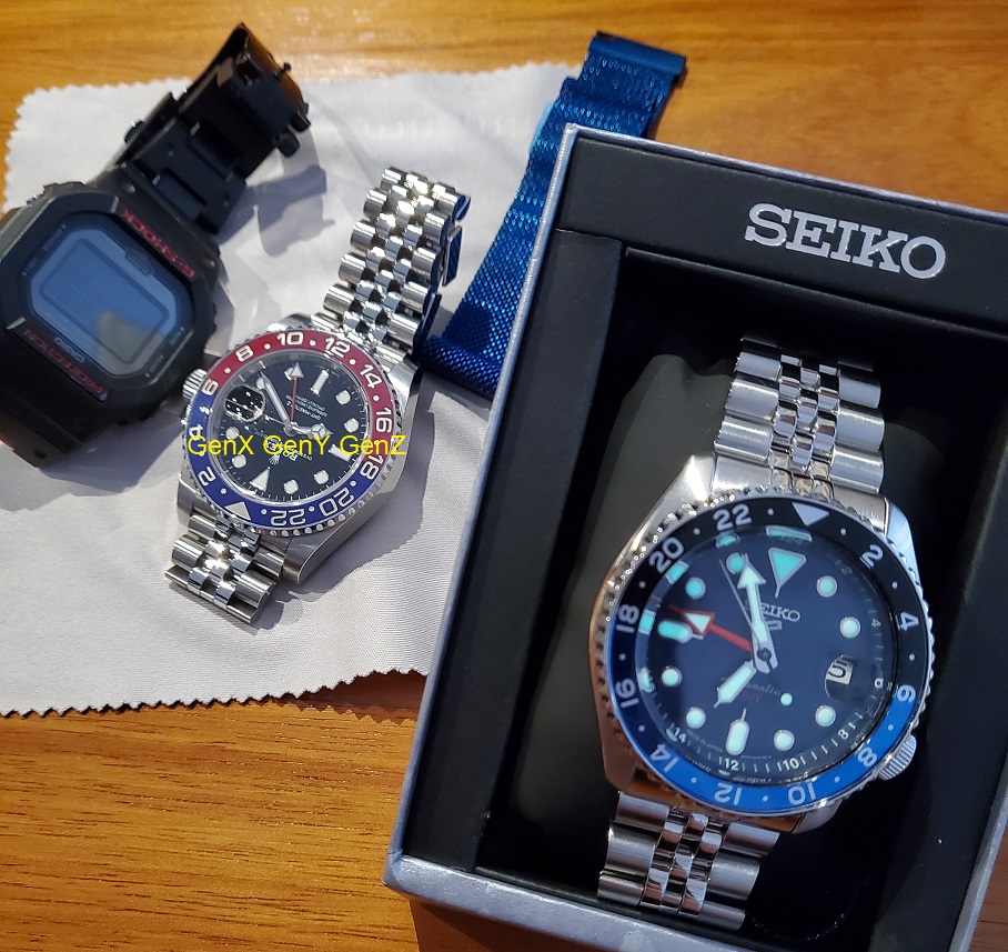 GenX GenY GenZ Presents Made In Japan Seiko 5 GMT Blue Dial with Black and Blue Bezel