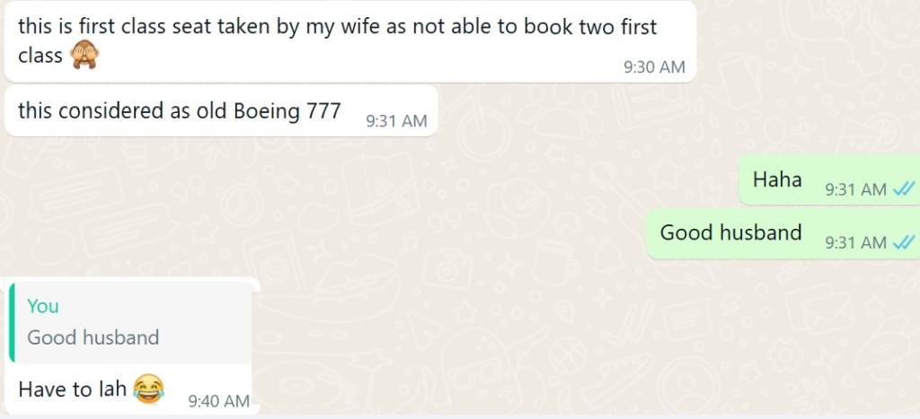 GenX’s comment – Well, the Business Class on the “Old” Emirates Boeing 777 Window Seat does look comfy I must say.