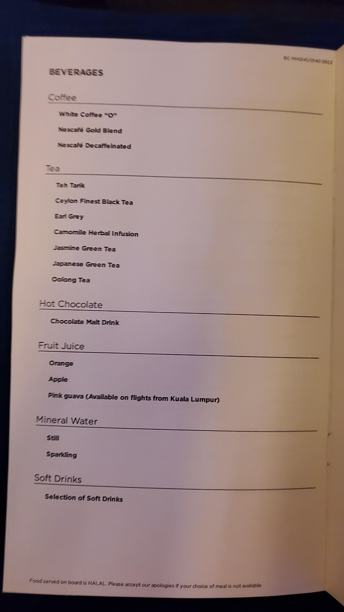 Malaysia Airlines Business Class Food