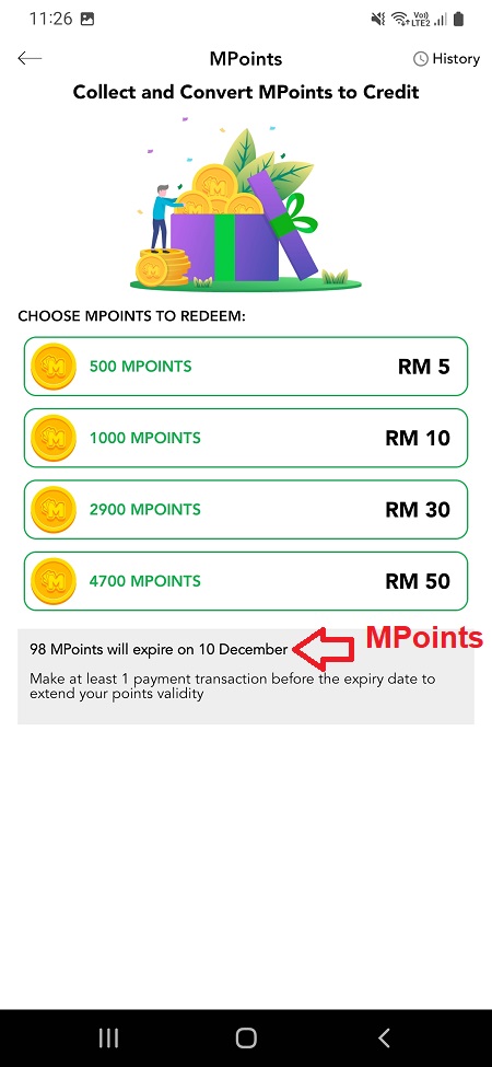 However, in order to keep your MPoints active before you reach 500 MPoints to cash out, you need to perform a transaction before the expiry date. Please note even if you had performed a transaction, it will still state that points will expire before a certain date…. the new expiry date will only be updated after the current expiry date has passed.