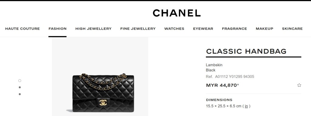 Back in June 2020, I posted the price of Chanel Handbags in KL and around the world. At that time, a Chanel Classic Double Flap Handbag cost RM28,620.