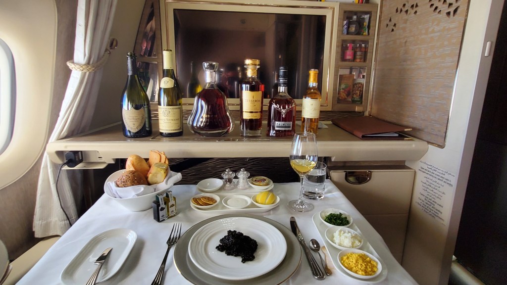 Emirates First Class Liquor and Spirit – must try Hennessy Paradis. Emirates selection of liquor is way better than Singapore Airlines.