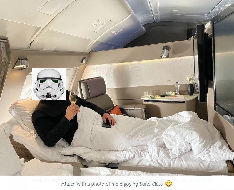 I would like to thank the Bro who sent me his quick review of Emirates First Class versus Singapore Airlines Suite Class plus teaching me how to call my credit card’s customer service landline number (which has no WhatsApp to call for FREE) when I am overseas. Which means I can also call Enrich Customer Service which we have to wait and wait and wait most of the time, hahaha.