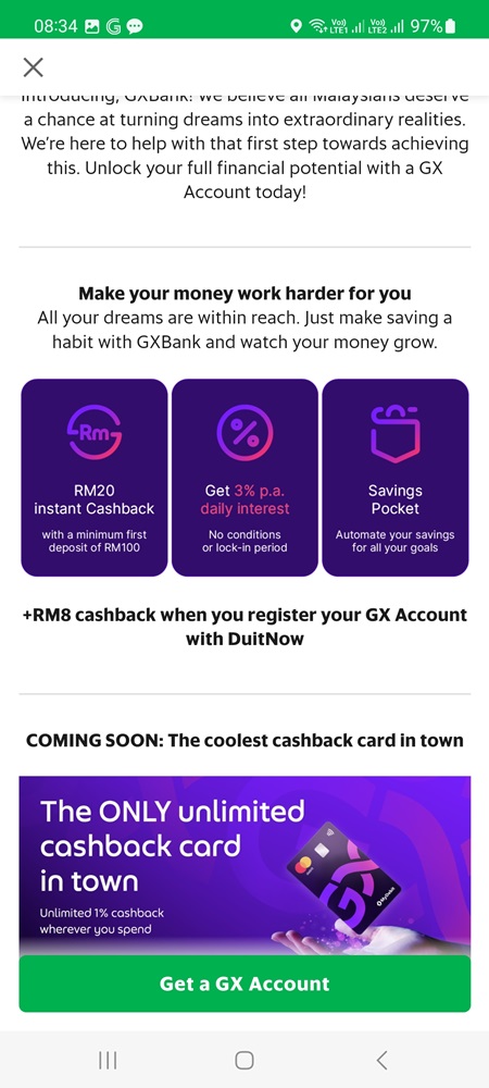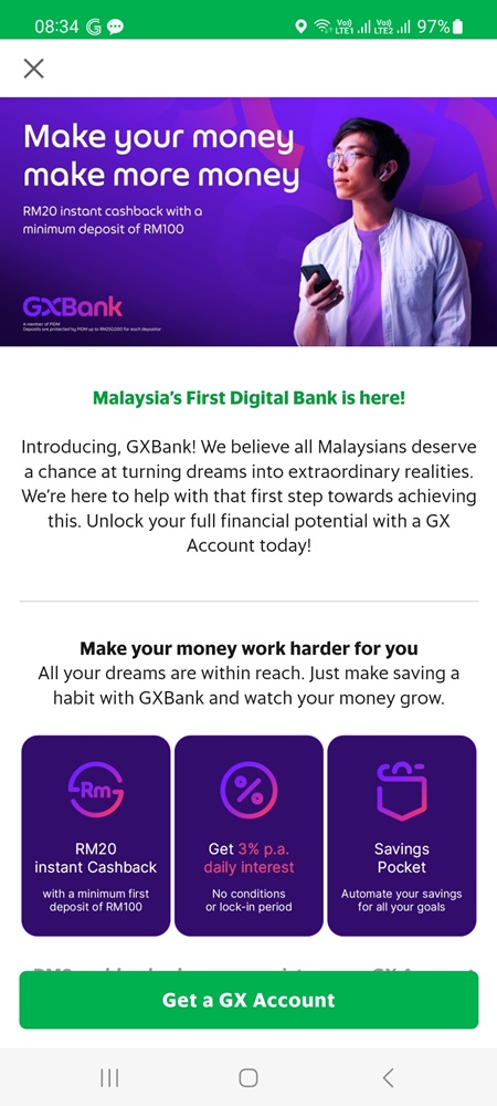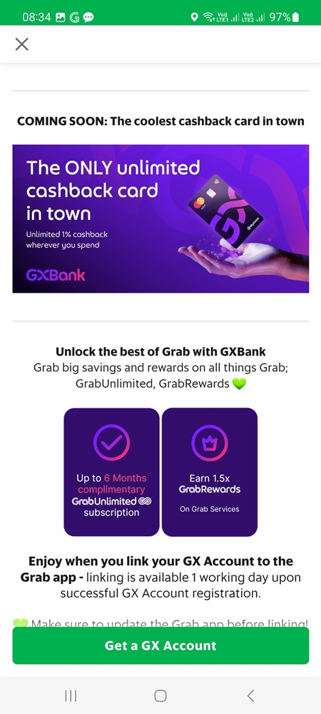 Just go to your Grab App and tap GX Bank for more info.