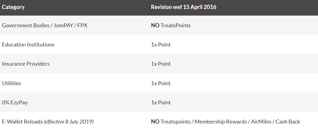 B. 5X Treats Points Monday to Friday for all types of transactions except for Government, Insurance, eWallet (this means Lazada Wallet and Shopee Wallet), Utilities and Education.