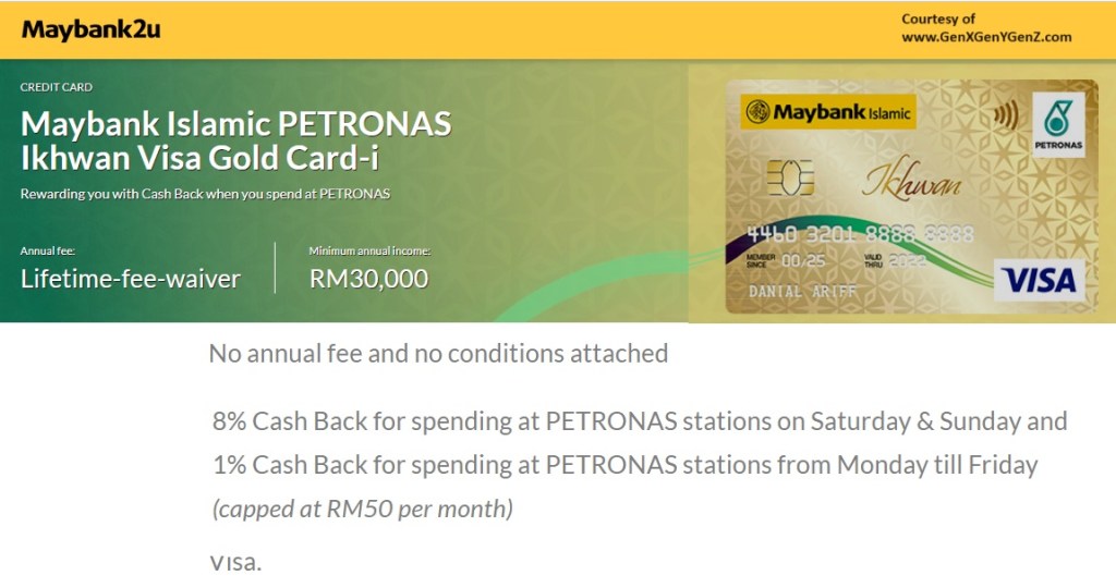 Today, I am once again stupidly promoting for Maybank for FREE the Maybank Islamic PETRONAS Ikhwan Visa Gold-i and Platinum-i where you earn 8% cash back on Saturday and Sunday.