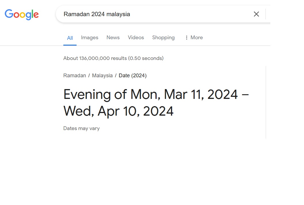 For example in 2024, from Google, it stated the month of Ramadan this year starts on March 11, see image below: