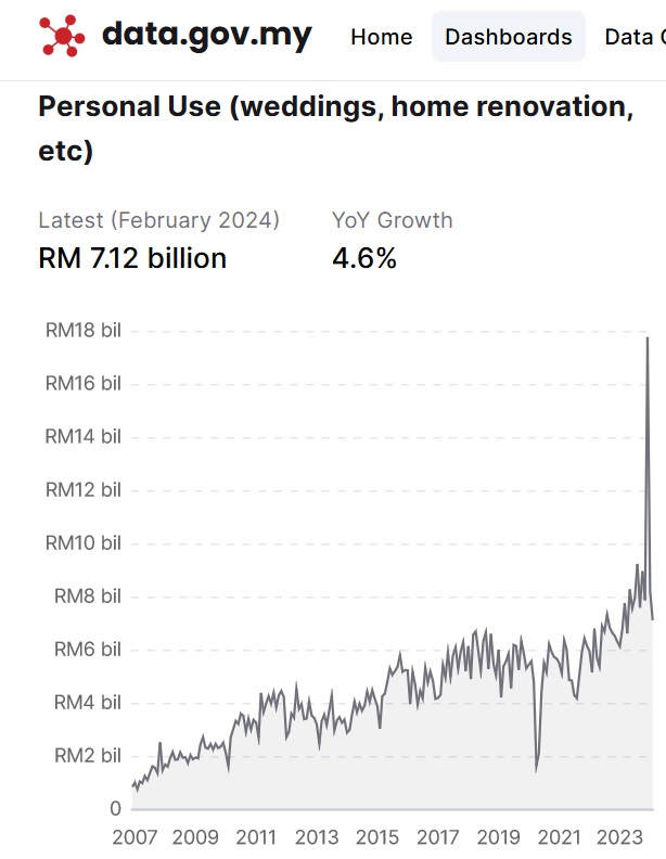 What is more interesting, but then again not unexpected, is that Personal Use (most probably from Personal Loans which is the main bulk of bankruptcy) has been increasing (once again there was a sudden surge during covid). And take note it mentioned weddings and renovations!!! So if one is in debt when they start their marriage, imaging the debt they will further incur from their honeymoon and then comes the children!