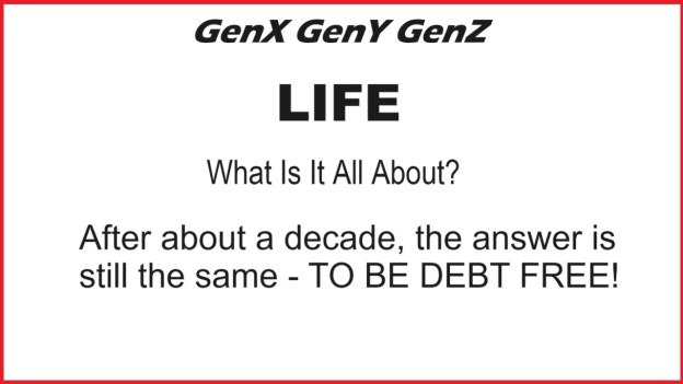 It has been about a decade or more since I first published my article titled LIFE – GOAL IS TO BE DEBT FREE.