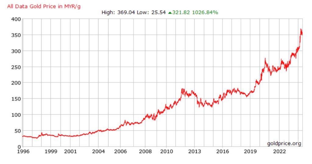 When I was in my mid twenties, I was into 916 Yellow Gold where at one time I was wearing 3 bracelets but one by one they got lost, haha. At that time, 1 gram of gold was selling for about RM50. I also had a custom made “Cartier” Love Bracelet which was imbedded with 7 solitaire diamonds, but eventually it also got lost, haha.
