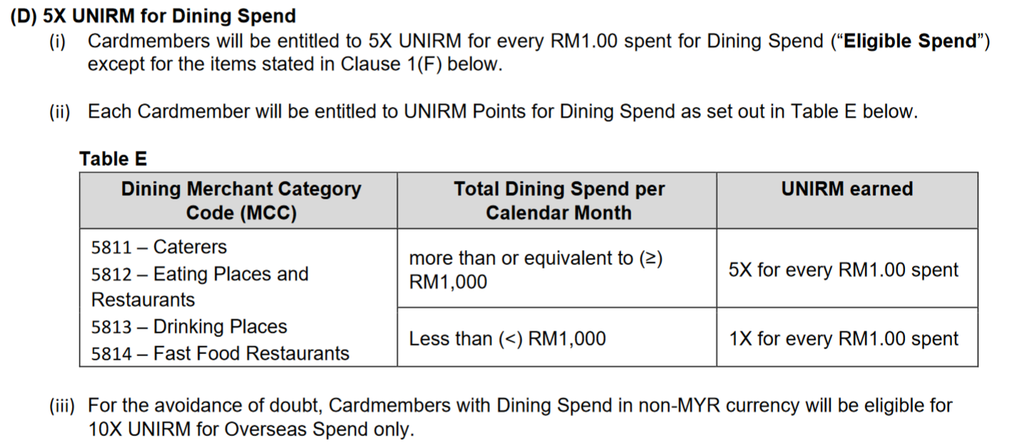 However, in order to earn air miles based on the spending rates mentioned above, the card member needs to transact minimum RM1K per calendar month on dining.