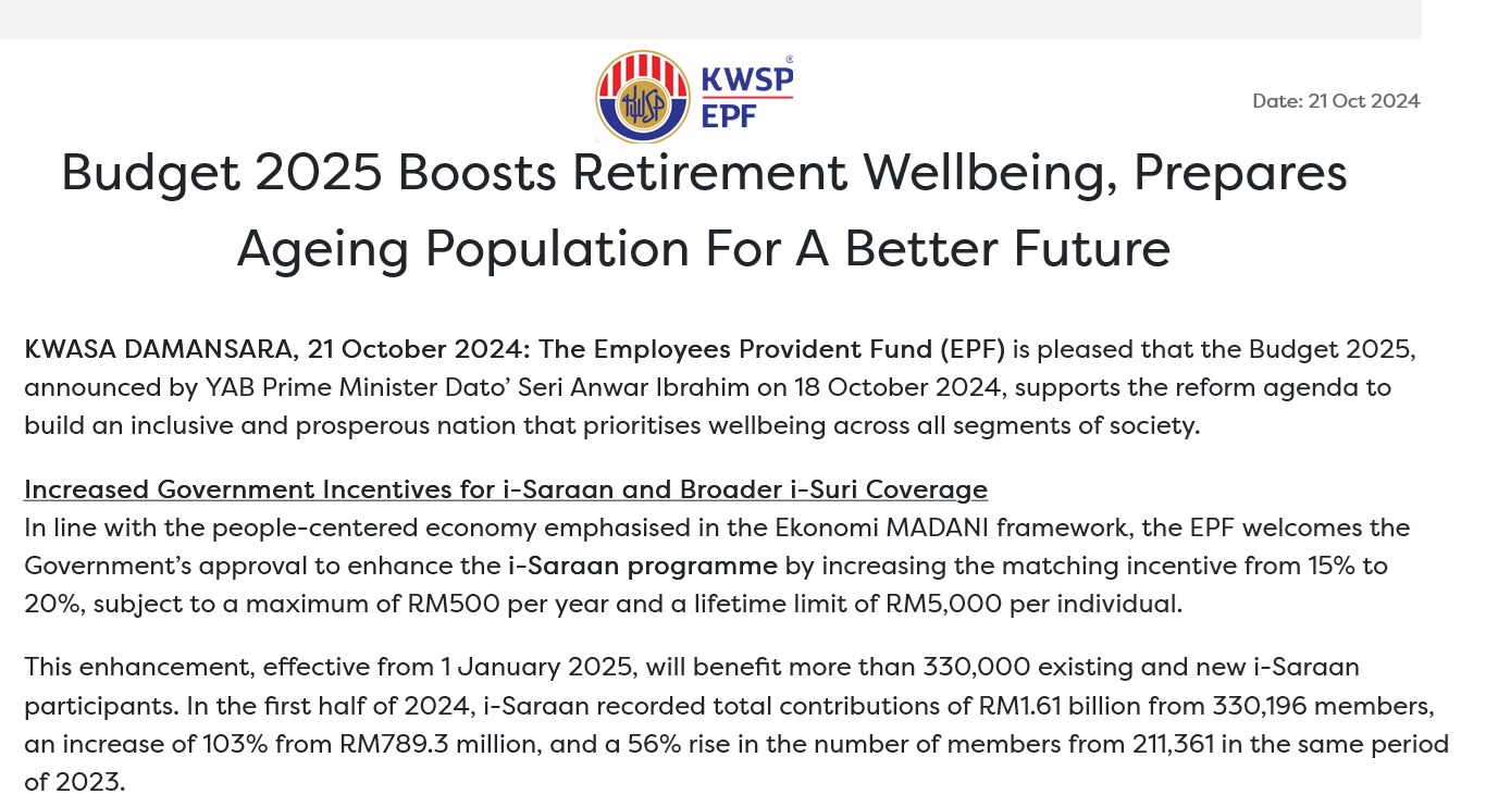 So from the above, the i-Saraan is suppose to be effective on 1st January 2025. But you can actually register for it now at EPF Website – click here to EPF i-Saraan Webpage and look for the window on the lower left of your screen to register..