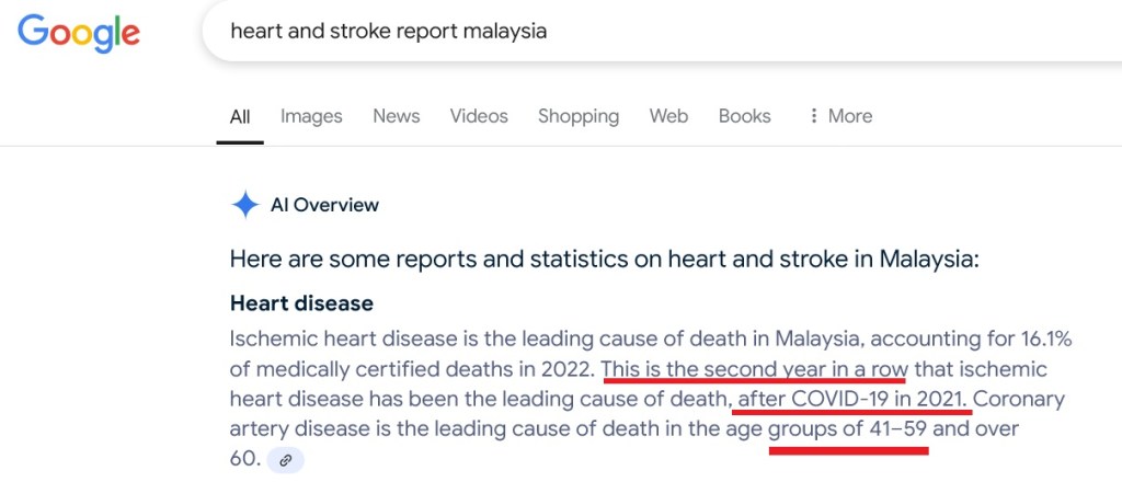 Wow! The AI reply at Google really surprised me – (1) After Covid-19 for 2 years in a row Heart Diseases is the leading cause of death AND (2) starting from age 41!!! I guess the above is self-explanatory.