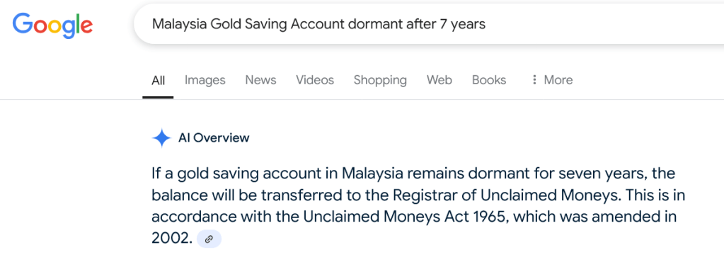 So coming back to my Gold Savings Account, before the seventh year I had to perform a transaction where I withdrew 5 grams to reactivate the account. But today this said account is dormant again as I have not made any transactions since years ago, haha.