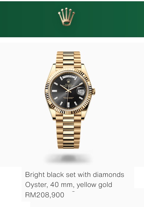 Prior to covid era, the Yellow Gold Rolex President shown below was selling for less than RM150K. Today Rolex Gold President Watch cost close to RM200K or more….. almost enough to get a new Entry Level Mercedes Benz!