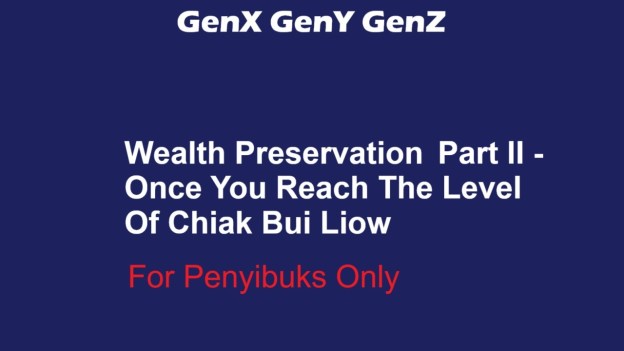 The point of the above paragraphs is that once you reach the level of chiak bui liow (i.e. you have more than enough money to survive until the day you die), you can still preserve your wealth by transferring it to your loved ones and hear them say thank you. BUT you must also understand once you give part of your wealth to you loved ones, it is no longer yours and your loved ones can do anything with it!