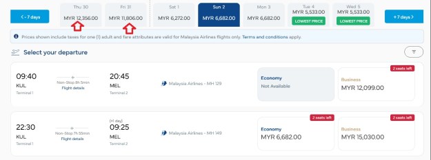 How about 1 way KUL to MEL ticket price? Below is what I got…. RM6.7K the weekend right after CNY!