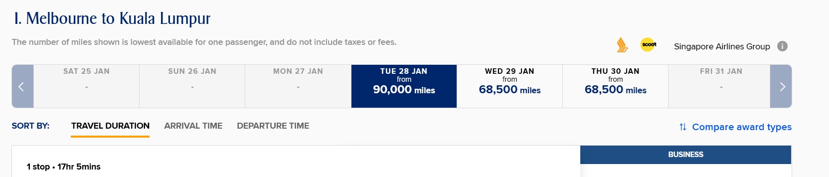 KrisFlyer Kuala Lumpur to Melbourne