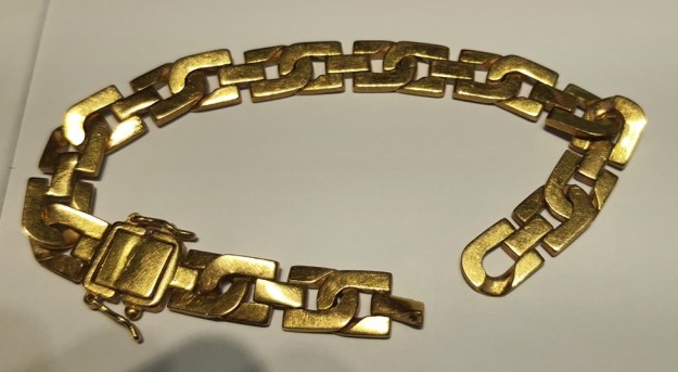 So I was happily wearing the Poh Kong bracelet until I broke it in January 2025! As you know I am half blind and somehow I hit my hand against the side of a cabinet which was painted white in a narrow corridor which was also painted white! My favorite bracelet broke due to the impact with the cabinet (I would think that luckily I wore the bracelet as it absorbed most of the force instead of my hand getting badly injured), so I took what was remaining of the bracelet to Poh Kong and found out that 1 link was missing! And because the link was missing and they had to cut another link to repair the bracelet, eventually it would be too tight for me. Therefore, I had no choice but to trade in the bracelet. Below is the photo of what used to be my favorite gold bracelet.