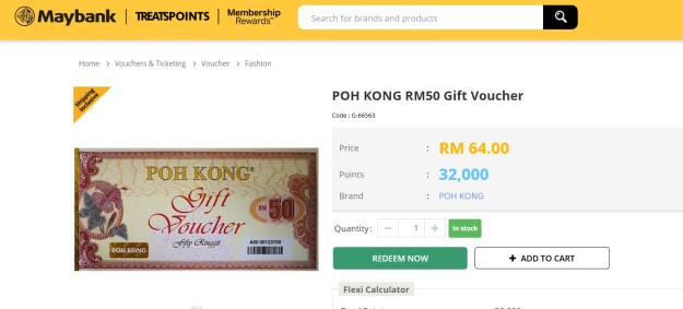 Today we can redeem RM64 Poh Kong Cash Vouchers with 32K TP.