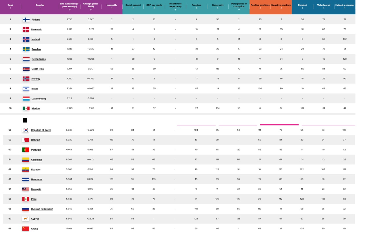 It was no surprise that Finland remained the Happiest Country on planet earth BUT I was surprised that Israel and Mexico were in the Top 10! Malaysia is ranked No.64 beating China at No.68. Well if you ask me, China number is freaking nice 6 -8 (say it in Cantonese), haha.