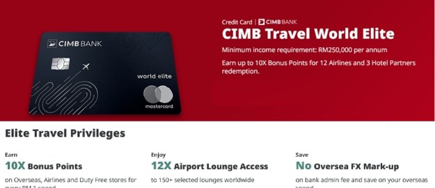 Firstly, if you observe the image above, the minimum annual income for the CIMB Travel World Elite is RM250K, which under my definition it would fall under the Super Premier Credit Card category.
