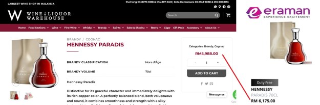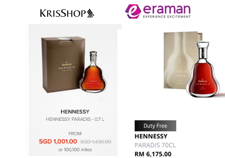 Now look at the above, KrisShop is offering Hennessy Paradis for less than RM3.5K whereas it is more than RM6K at Eraman!