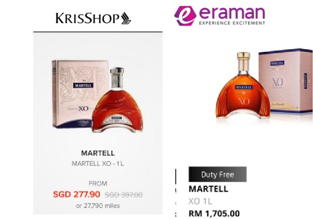 And look at the Martell XO 1L, it is selling for SGD277.90. So for equivalent 70cl, the price would work out to be SDG277.90 x 0.7 = SGD194.53 which is less than RM700.
