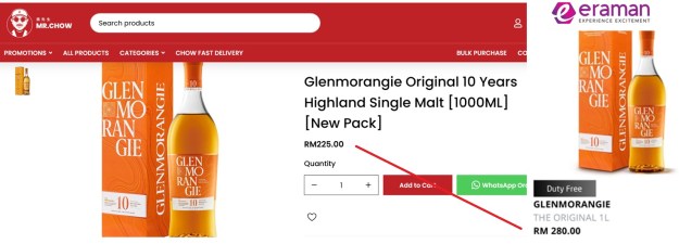 We can even get the same liquor for less from local merchants in Malaysia where they need to pay duties, no kidding. Below are two examples where Eraman Duty Free liquor cost more!
