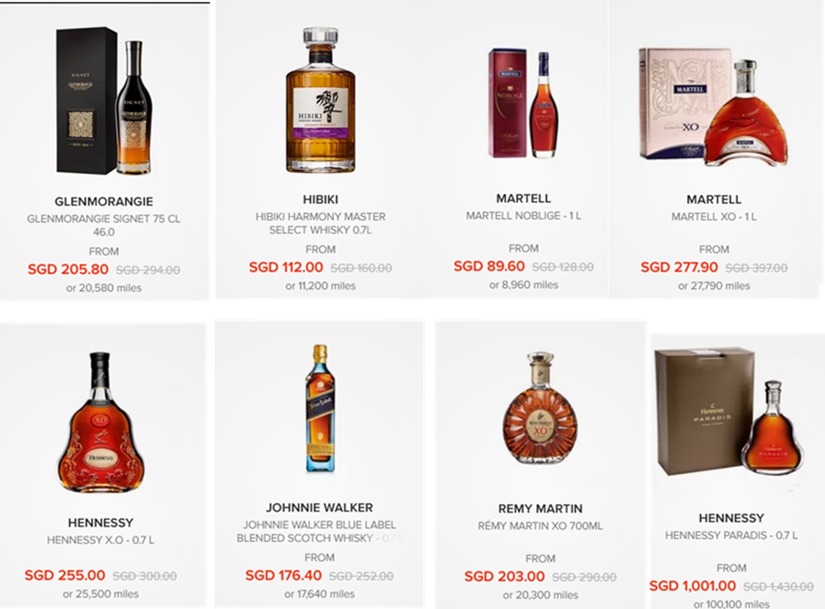 Below are some of the super sale Duty Free prices for Whisky and Cognac at KrisShop: