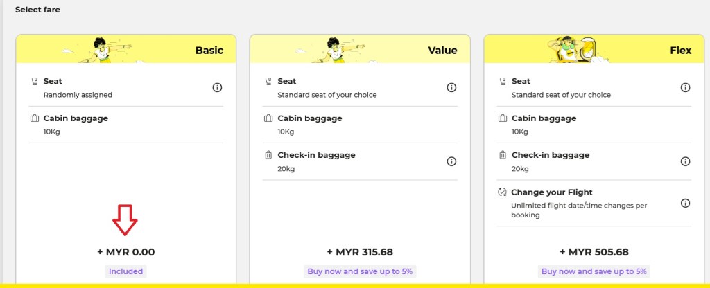 Next I had to Select Fare category. I selected the RM0 option as we only usually carry one Check-In Baggage: