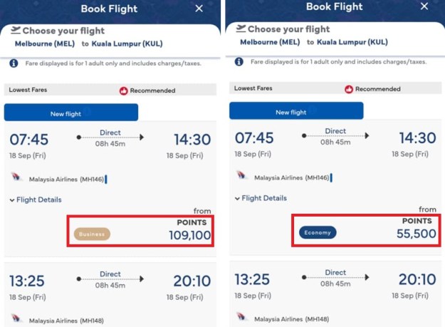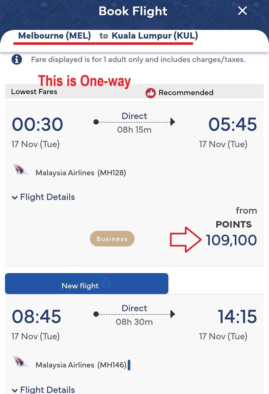 Another thing I have observed over the years, I can redeem a RETURN Business Saver Option KUL/Melbourne where I need 75K Enrich Points per way. It is the same where I will only need 75K Enrich Points when I can can secure a one-way Business Saver Option KL to Melbourne. BUT if I were to just redeem a Malaysia Airlines one-way Business Class Melbourne to KL, I will need more than 100K Enrich Points!