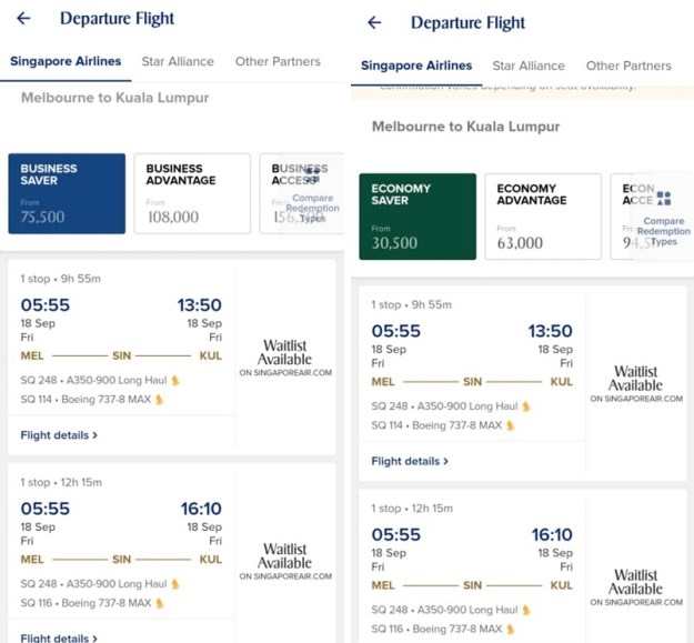 KrisFlyer worst still, we got KF miles also cannot get confirmed Saver Option for 18th September 2026 which is more than 8 months away from the date I drafted this article. Only WAITLIST are available for Economy and Business Class too for Saver Option. We can go with Advantage or Access but that will need much more KrisFlyer miles.