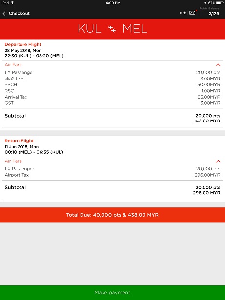 AA Big Loyalty App Flight Summary and Miles and Payment