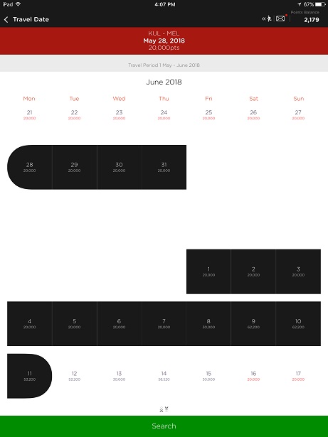 AA Big Loyalty App Select Dates and Search