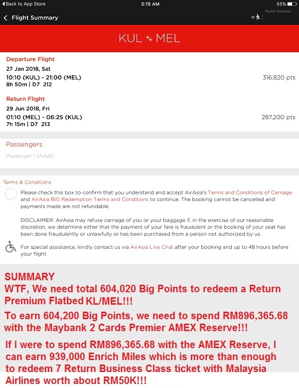 AirAsia Big Loyalty Premium Flatbed KL Mel Summary