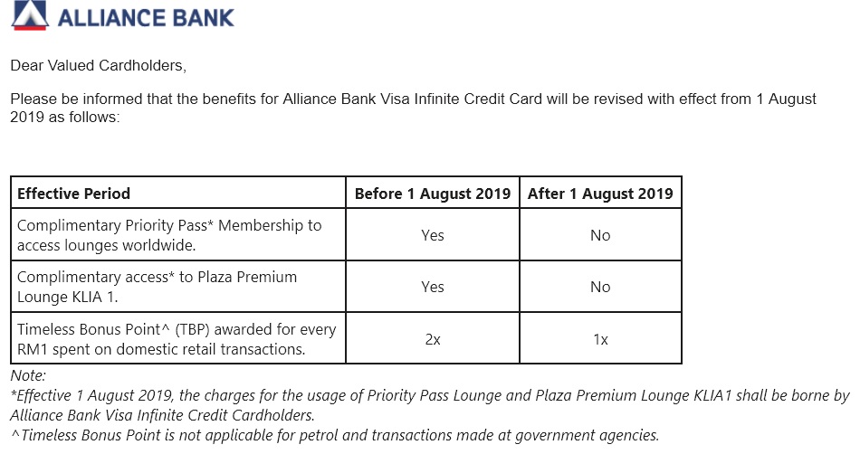 Alliance Bank Visa infinite Revision 2019