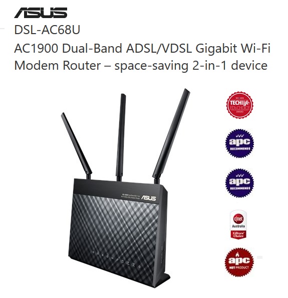 Asus DSL-AC68U AC1900 Dual Band Modem Router