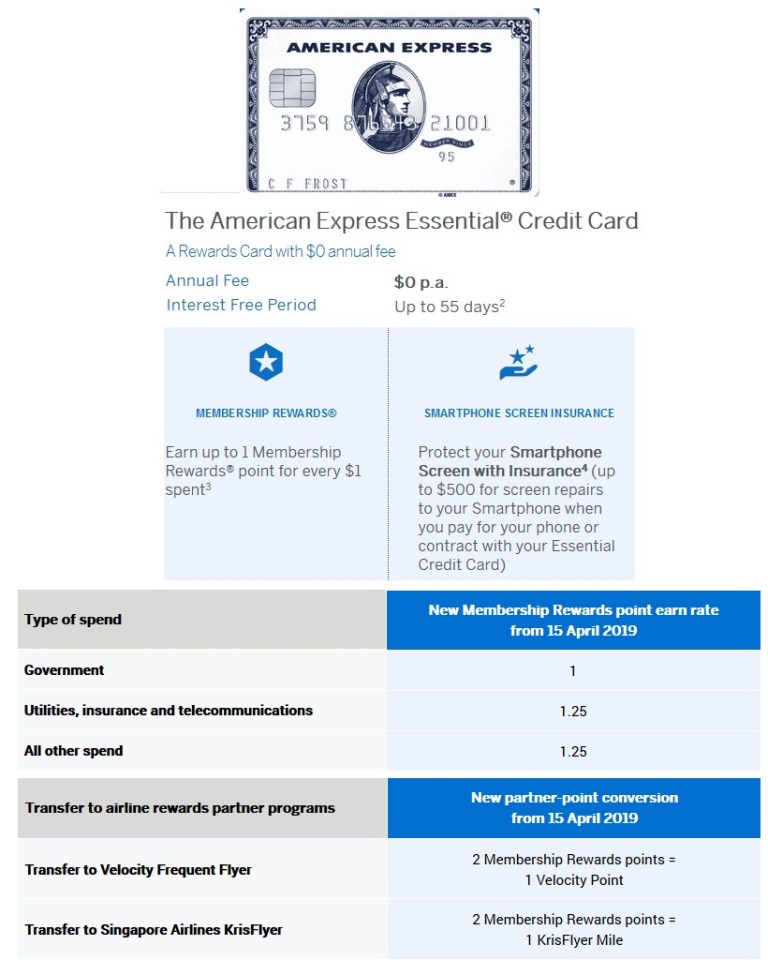 Australia AMEX Essential Credit Card FREE No Fee for Air Miles
