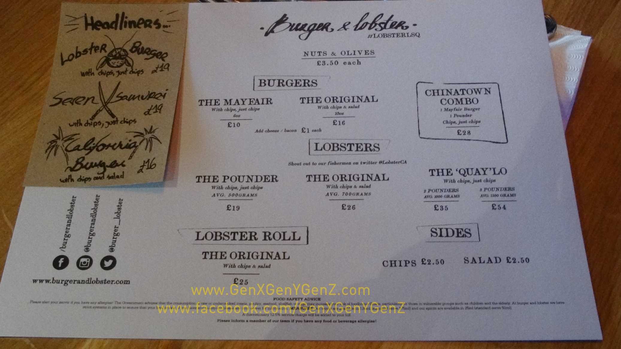 Burger and Lobster Chinatown London Menu