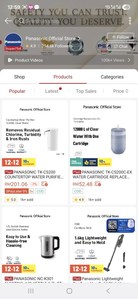 Once again you may see a similar product that is listed in an Official Store but the 3rd party seller’s product may be fake. Example you can see the Panasonic Kettle in the above image of Panasonic Official Store but I can tell you that there are fakes too! One thing I have learned from shopping at Lazada and Shopee is always buy from Official Stores or Authorised Resellers only when it comes to supplements, health products, electrical,electronic and computer stuff. As for liquor, just buy at Jaya Grocer’s Hanks.