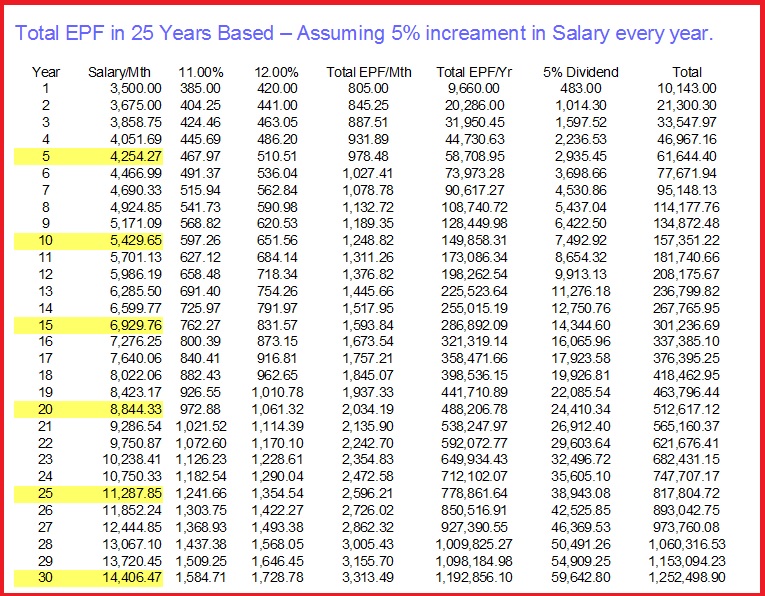 Bros & Sis, just go use excel to calculate the estimated EPF amount you will have in 10 or 20 years time and you will be surprised how much you will have because of compound interest which is tax free and headache free!!! IF you do not know how to calculate, contact me and I will teach you how to calculate compound interest. After which you will realise that what you have been told by Insurance Agents and/or Bank Agents about how much interest you can earn are all bullshit and you will know that nothing beats EPF or even Fixed Deposit which are tax free, principal and interest/dividend guaranteed and no need to pay a sen to anyone for managing your funds (i.e. you are making other people richer, the agent who sold you the so called investment package and the people who are managing the fund)!!!