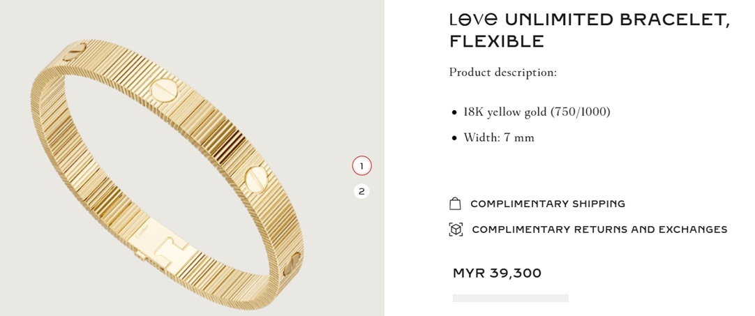 Now, if you were to check online the second hand prices of Cartier yellow gold jewellery, especially the Cartier Love Bangle (which is cheaper than the Love Unlimited), you will note that it is selling for more than RM15K.