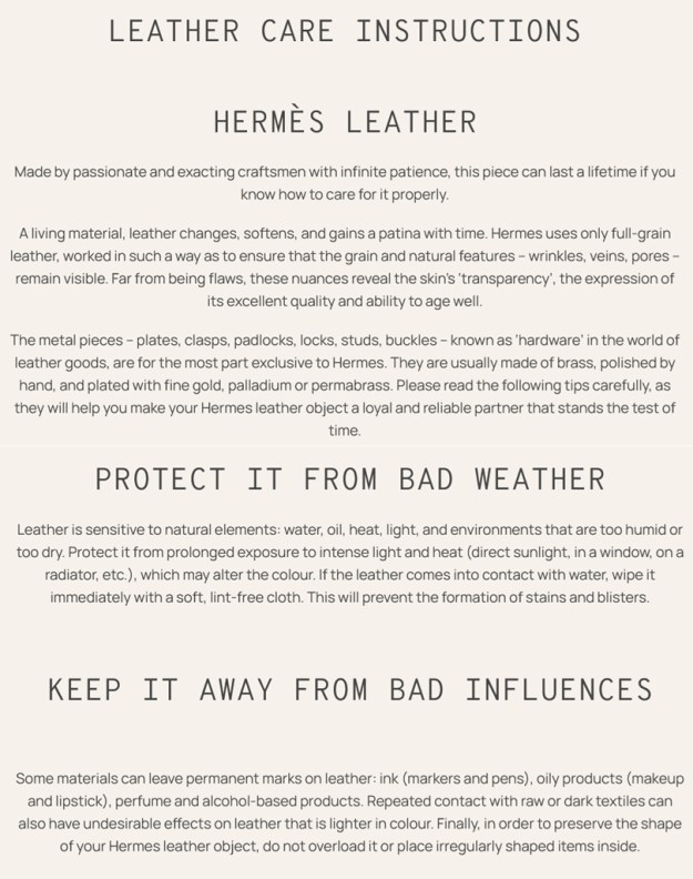 And leather bags are kind of lousy, below are instructions from Hermes…. read the part on Bad Weather…… basically the Hermes leather bag is not for Malaysia’s weather which is HUMID all the time, with bright sunlight and raining cats and dogs!