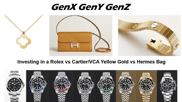 Investing in a Rolex versus Hermes Bag versus Van Cleef & Arpels 18K Yellow Gold versus Cartier Love Unlimited 18K Yellow Gold Bracelet versus Physical Gold Bullion