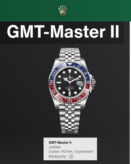 Today, October 2025, a new Rolex GMT Master II Pepsi cost RM48,600 (above picture) and a 31mm Datejust with fluted bezel cost RM38,550.